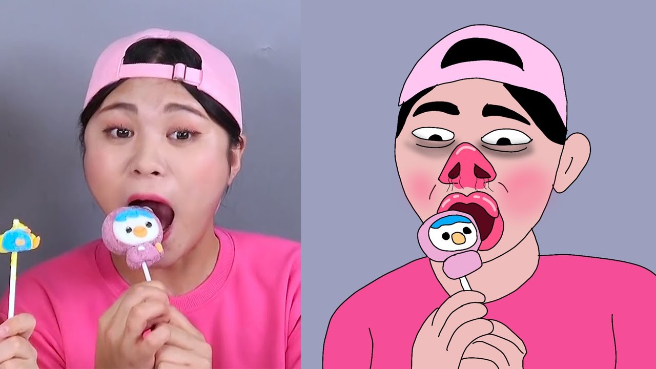 Thực phẩm thật VS Thử thách thực phẩm giả DONA ||| troll..i don't draw
