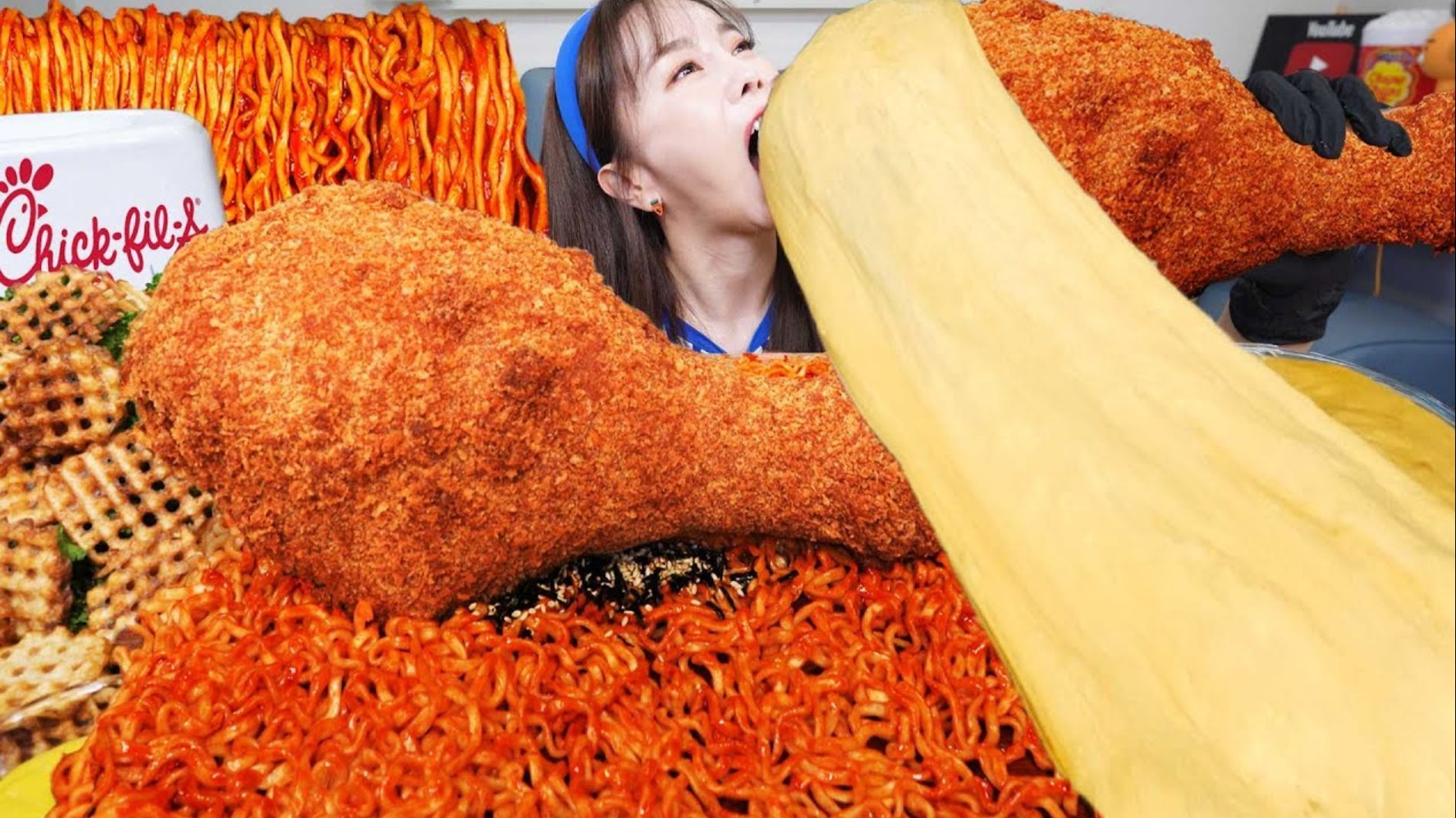 ASMR MÌ ĐẬU ĐEN, GÀ RÁN CAY , PHIM ĂN MUKBAN 6