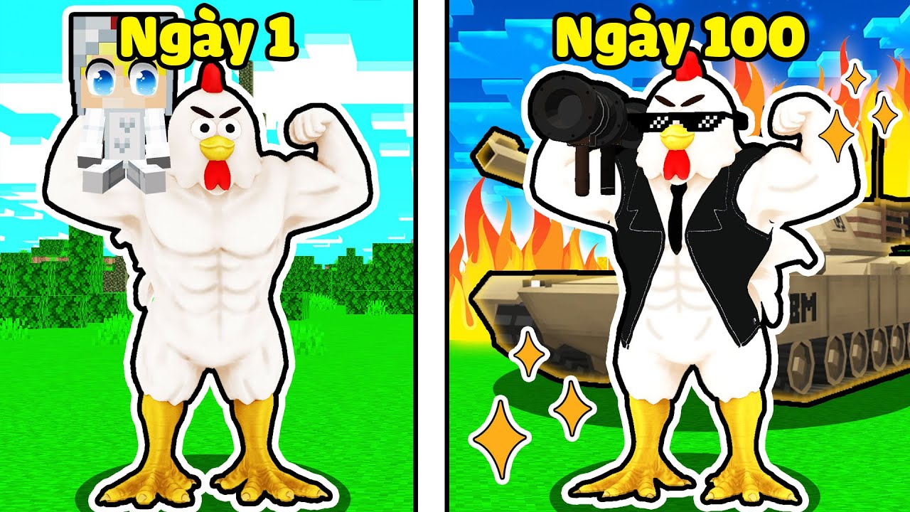 TÔ GÀ THỬ THÁCH 100 NGÀY TRỞ THÀNH GÀ 6 MÚI SIÊU MẠNH TRONG MINECRAFT*TÔ GÀ THỬ THÁCH 24H TẬP TẠ