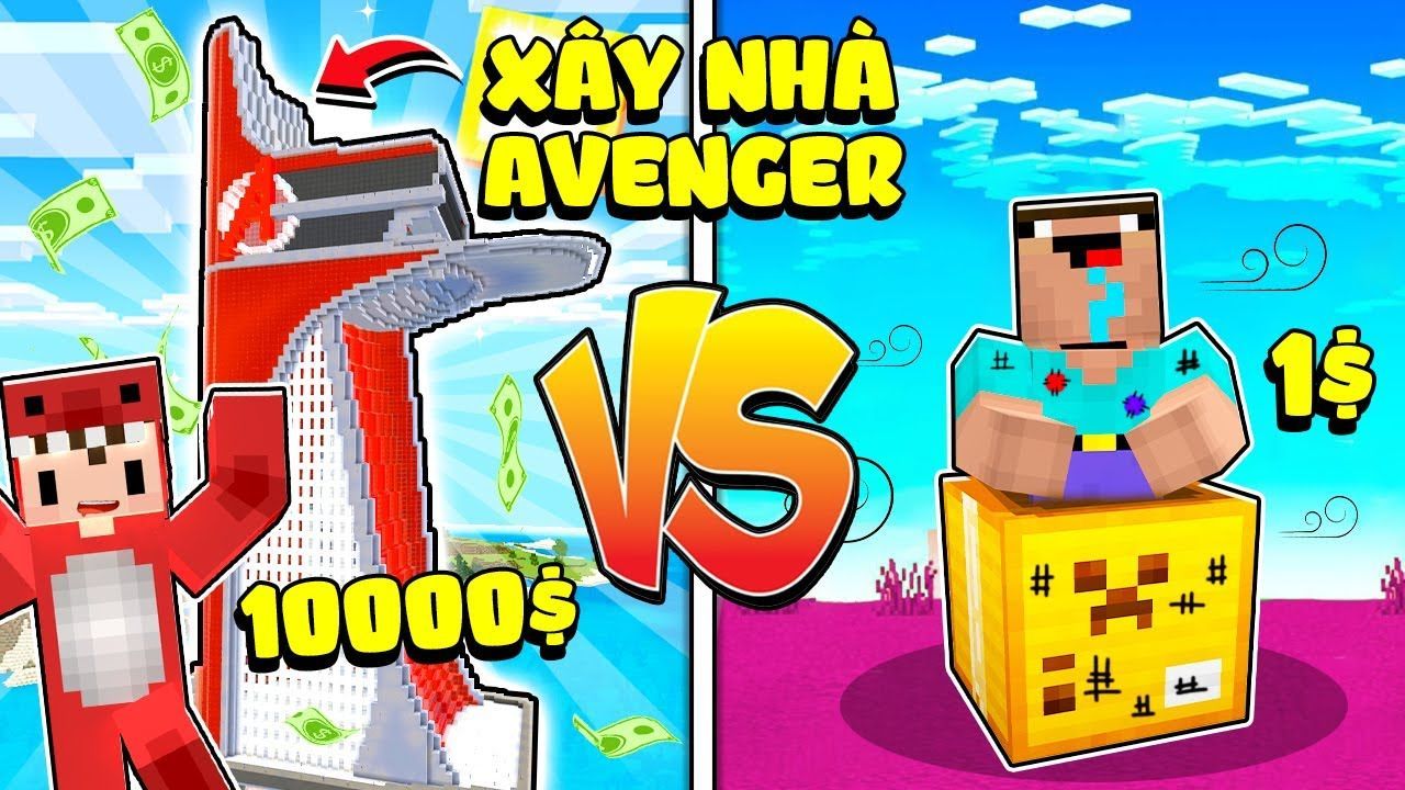 Rex Và Noob Thử Thách Xây Nhà Siêu Anh Hùng Marvel 1$ VS 10000$ Trong Minecraft !!