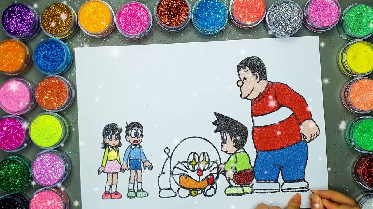 Ông Già Noel Doraemon ✍ Vẽ Và Tô Màu Tranh Cát Hoạt Hình Doraemon 🎨Học Màu Sắc | Heo Xinh