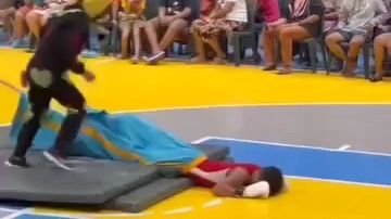 Giáo viên huấn luyện nam cường tráng với làn da rám nắng, thân hình vạm vỡ kiên trì tập luyện