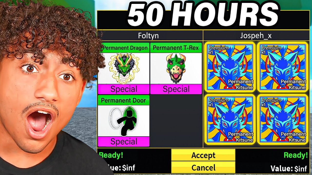 Trading PERMANENT KITSUNE FRUIT For 50 Hours In Blox Fruits..