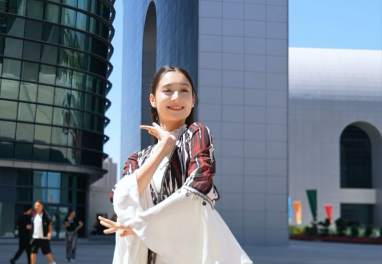 "Đây là Phòng trưng bày nghệ thuật Tangbula Baili ở Tân Cương! Khi cô gái ngọt ngào nhảy múa giữa ch