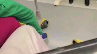 Một đứa trẻ cởi giày, dựa vào tay vịn trên tàu điện ngầm. Bố mẹ cậu bé không hề ngăn cản. Mãi đến kh