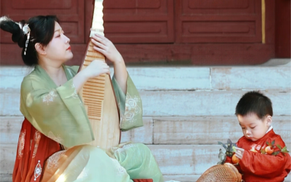 Chơi một bản nhạc "Mười mặt phục kích" cho em bé dễ thương trên đàn tỳ bà, và em bé cứ nói rằng em s