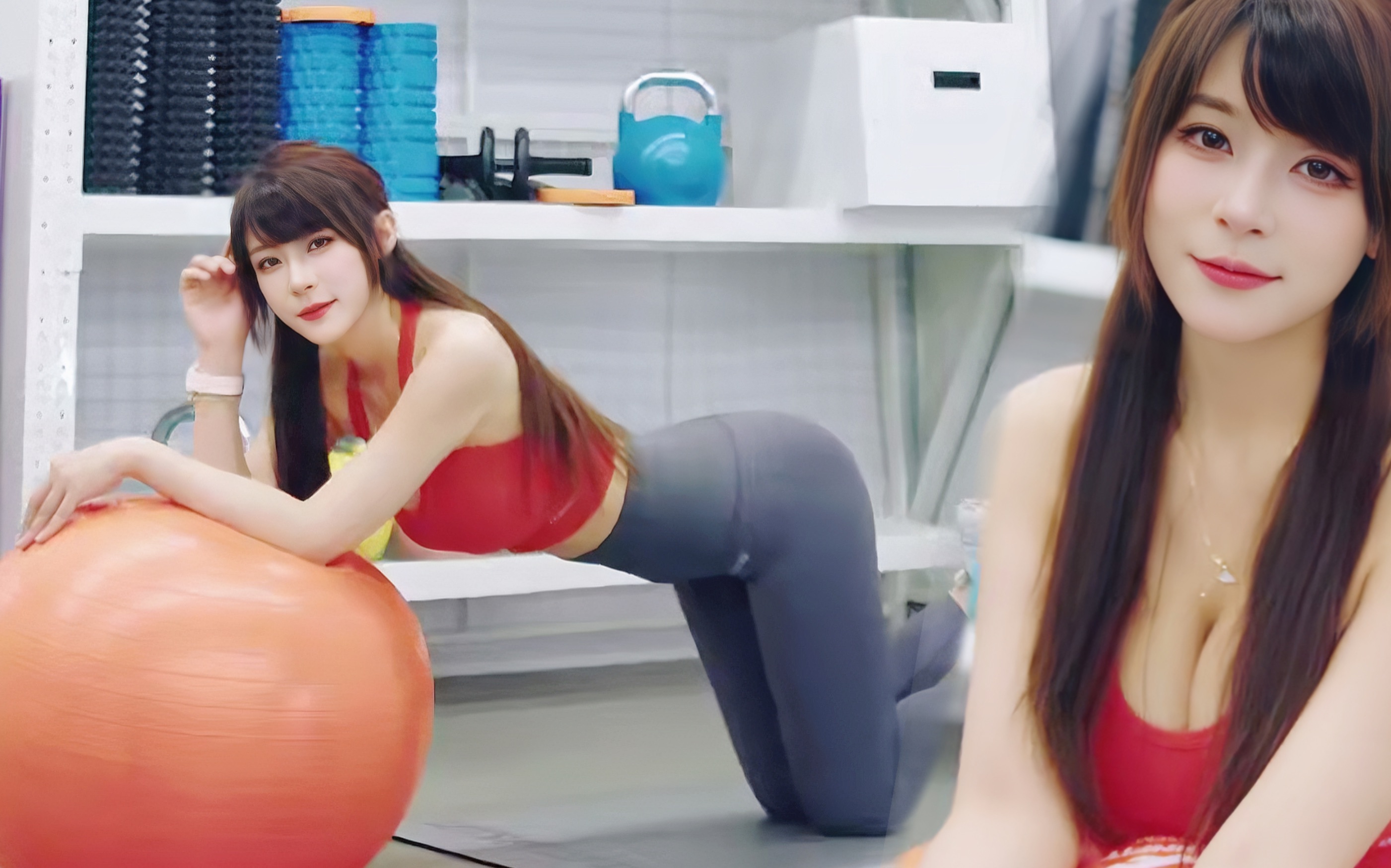 Em gái vũ công mặc đồ thể dục màu hồng chụp ảnh
