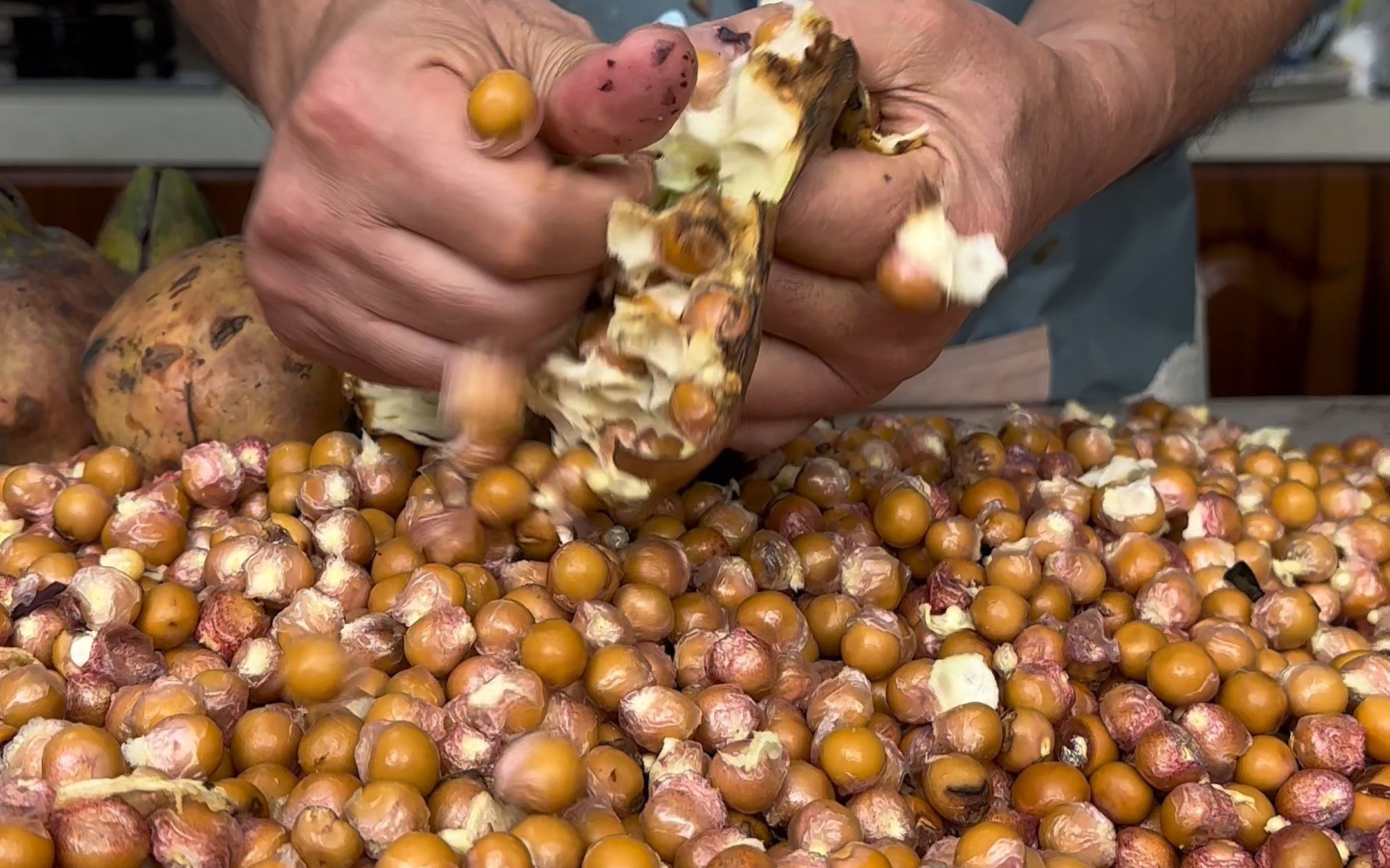 Cắt tổ ong và đun sôi sáp ong để làm son môi cho chị Ping. Quá trình này khó khăn, tại sao bạn không