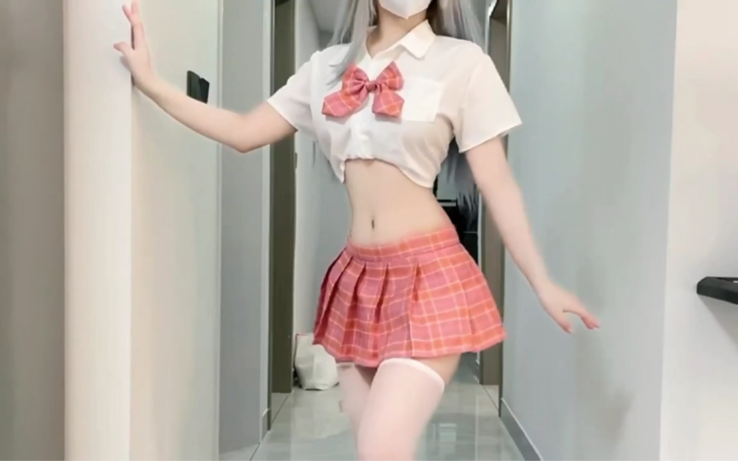 Em gái vũ công mặc đồ thể dục màu hồng chụp ảnh