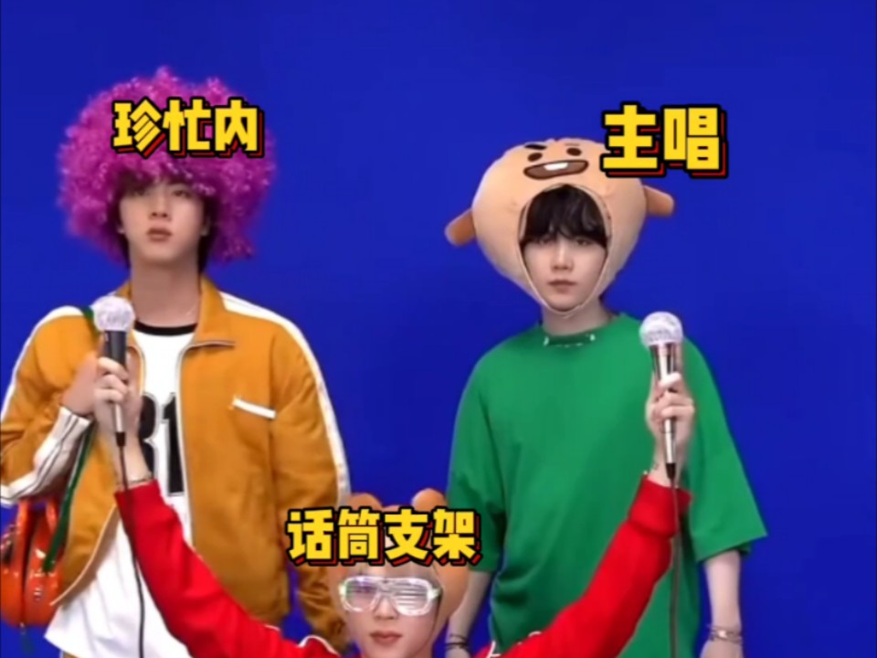 Cảnh này buồn cười thật. Các nhóm khác đều mặc vest và cà vạt, nhưng BTS lại đội "búi tóc" sặc sỡ ha