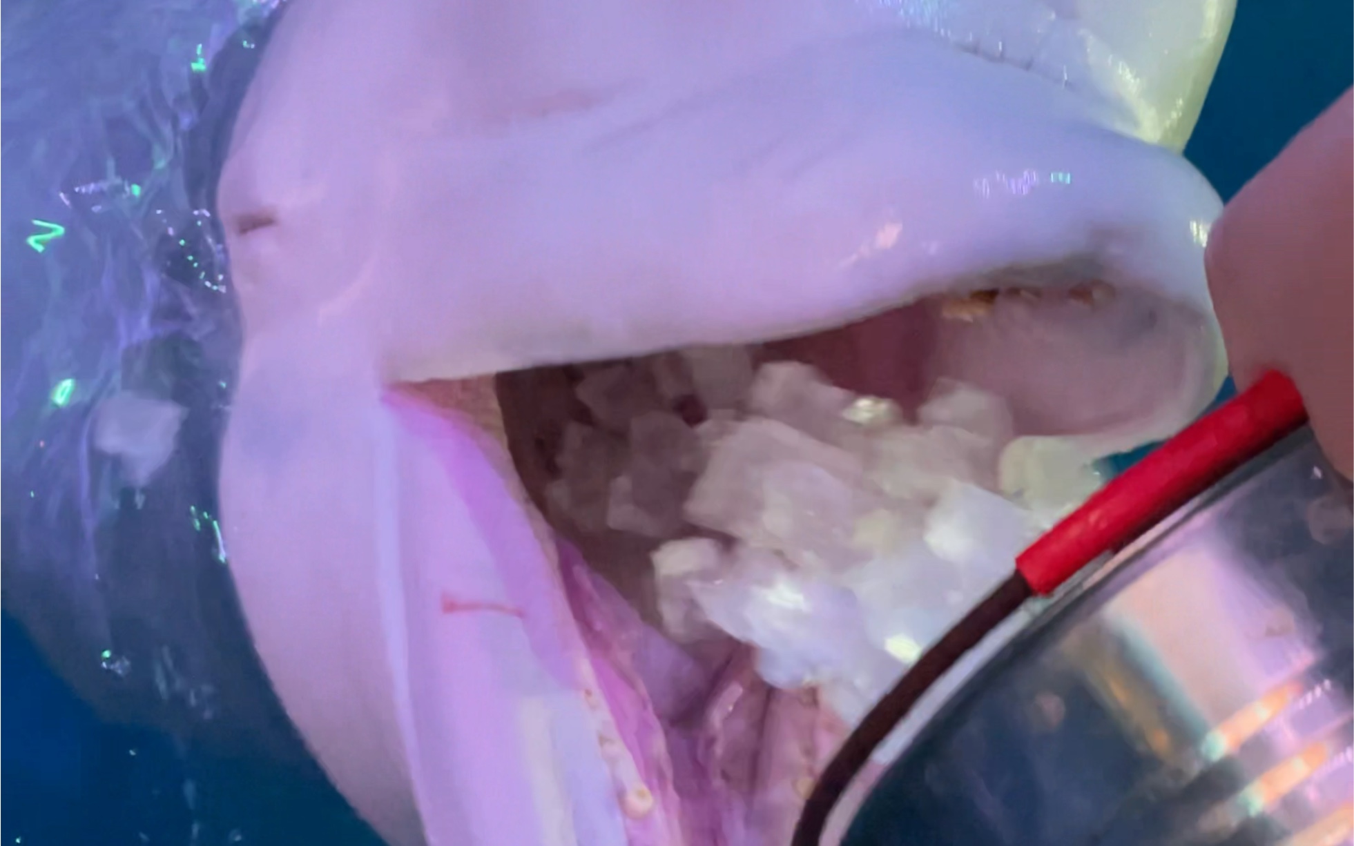 Cá voi trắng ăn đá viên không cần nhai đâu nhé