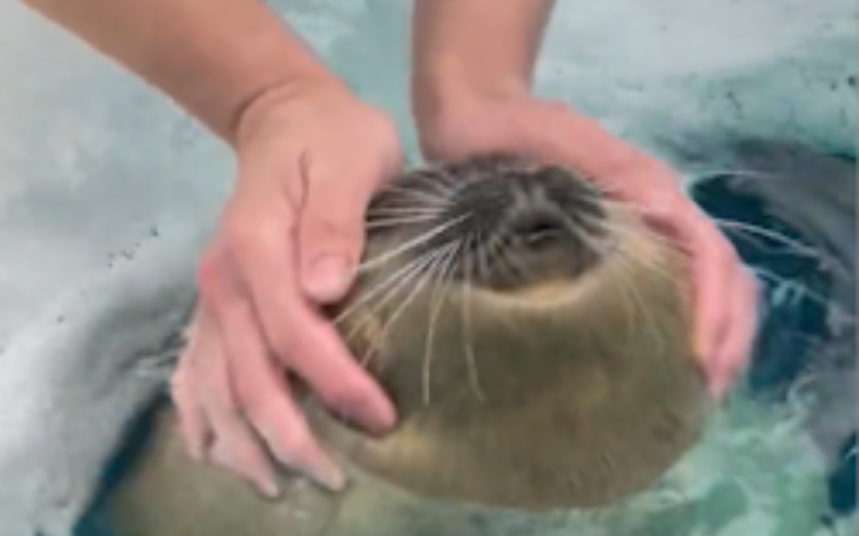 Hải cẩu con 21 ngày tuổi lần đầu bị sặc nước