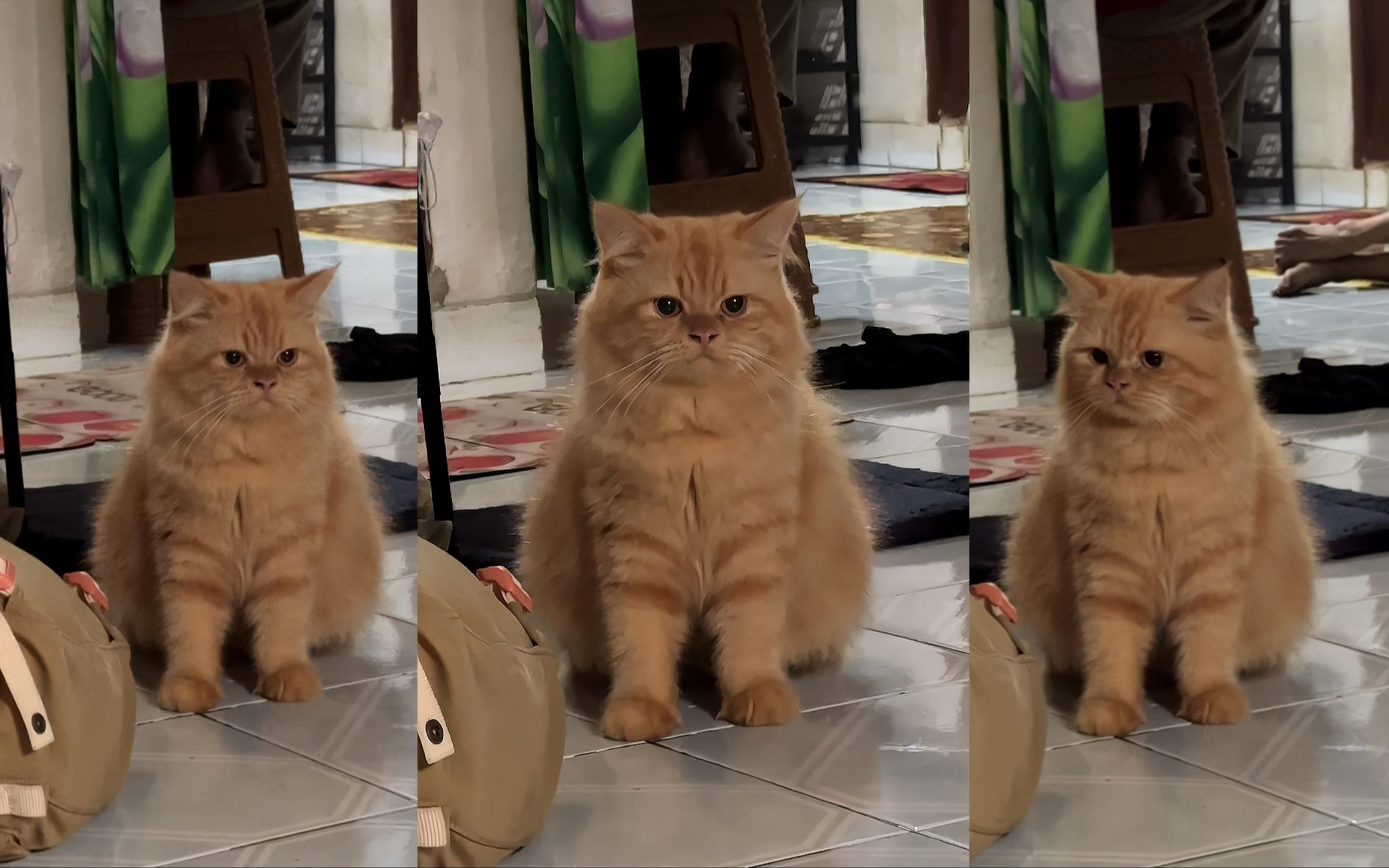 Con mèo màu cam đã bị sốc khi nhìn thấy con mèo cơm khô!
