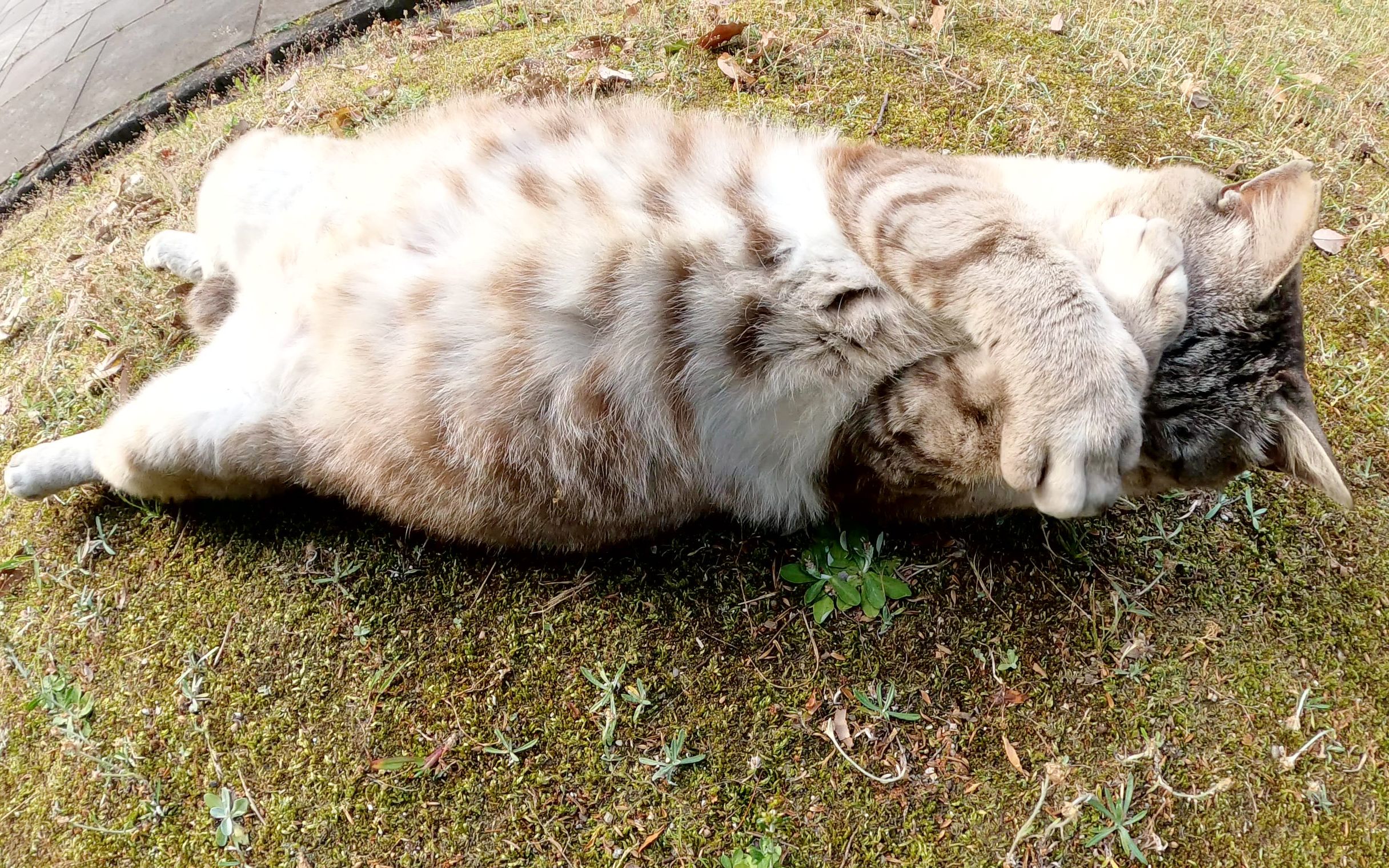 [Mèo cưng] Đôi mèo quấn quít chơi trên ghế băng