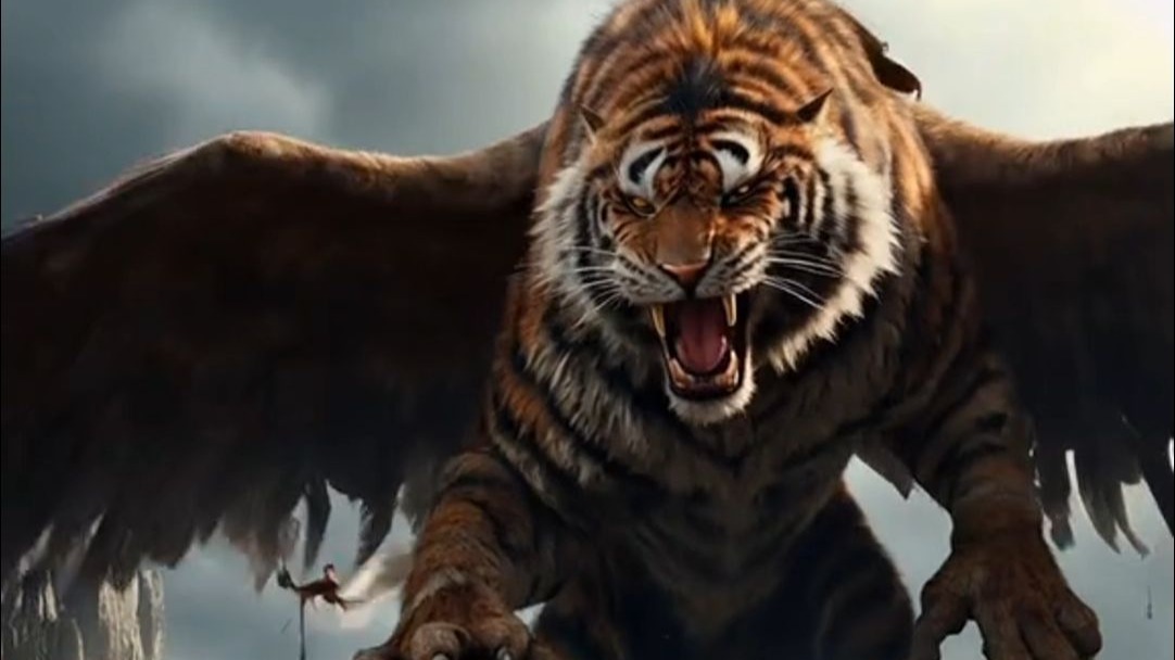 Hai con hổ cưỡi lên một con mèo lớn