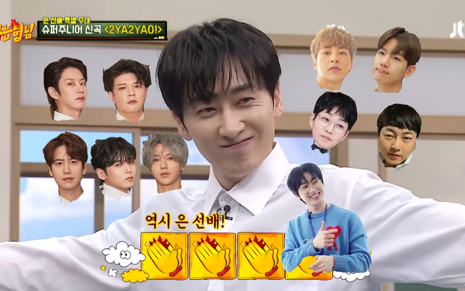 Super Junior, đến tìm Kim Heechul nào. Kim Heechul trông chẳng lạc lõng chút nào. Hahaha