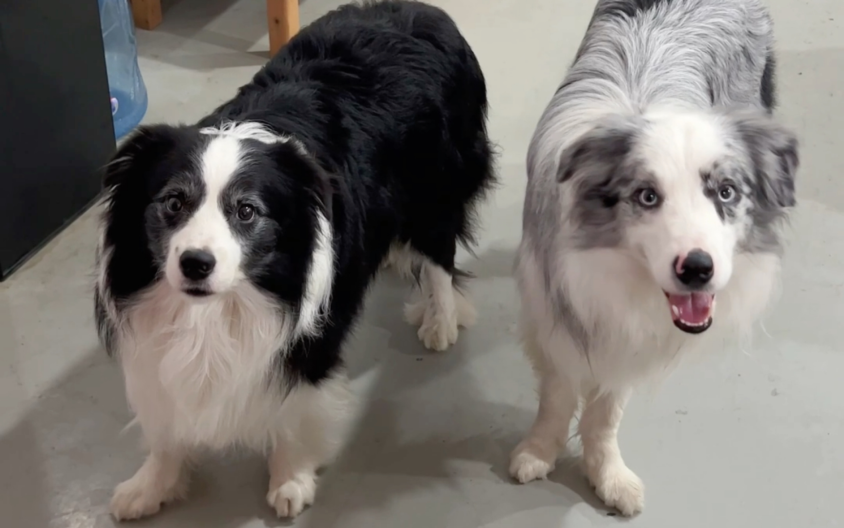 Thú cưng đáng yêu|Khi Border Collie và Husky nhìn thấy lật đật