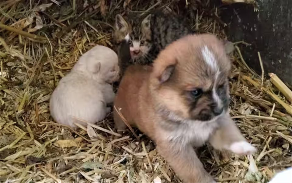 Mèo con nhìn thấy gà con chạy vào tổ liền cố ý mang lại hơi ấm cho nó