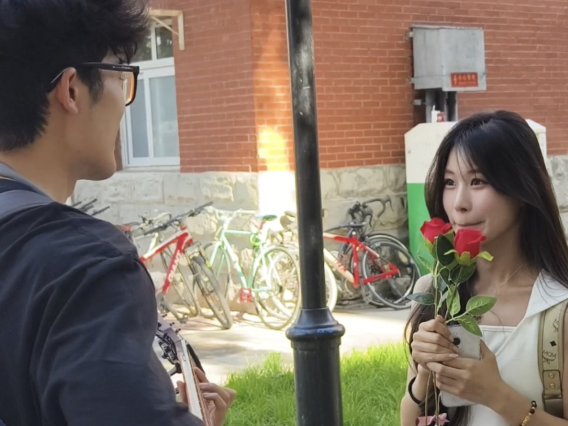 Hai nam sinh nhảy waltz trong khuôn viên trường