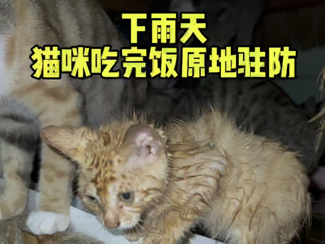 Mèo con ơi, sao em lại về nhà? Mèo: Meow~ Tôi không biết ai đã tạt nước vào tôi!