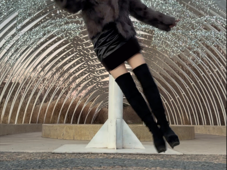 Quần da, giày cao gót trong suốt, khiêu vũ 1