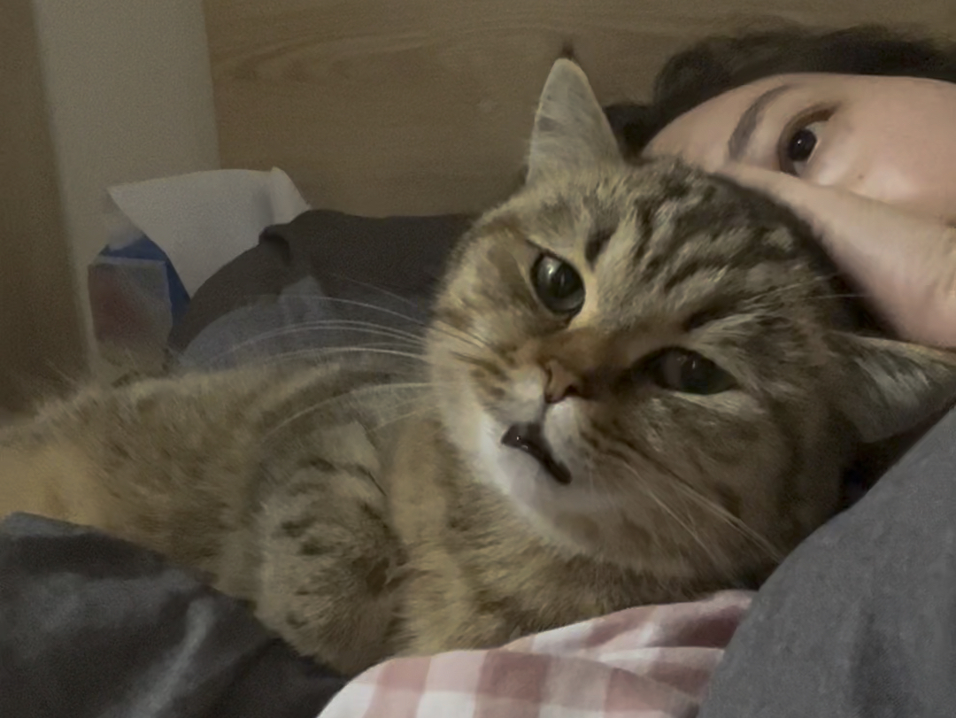 [Thú cưng] Chắc nằm trong chăn nóng quá, tự thò đầu ra