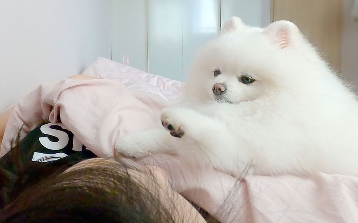 Chó Pomeranian ăn bánh gạo xúc xích và bánh gạo thịt lợn trên mạng, nhai ngon quá!