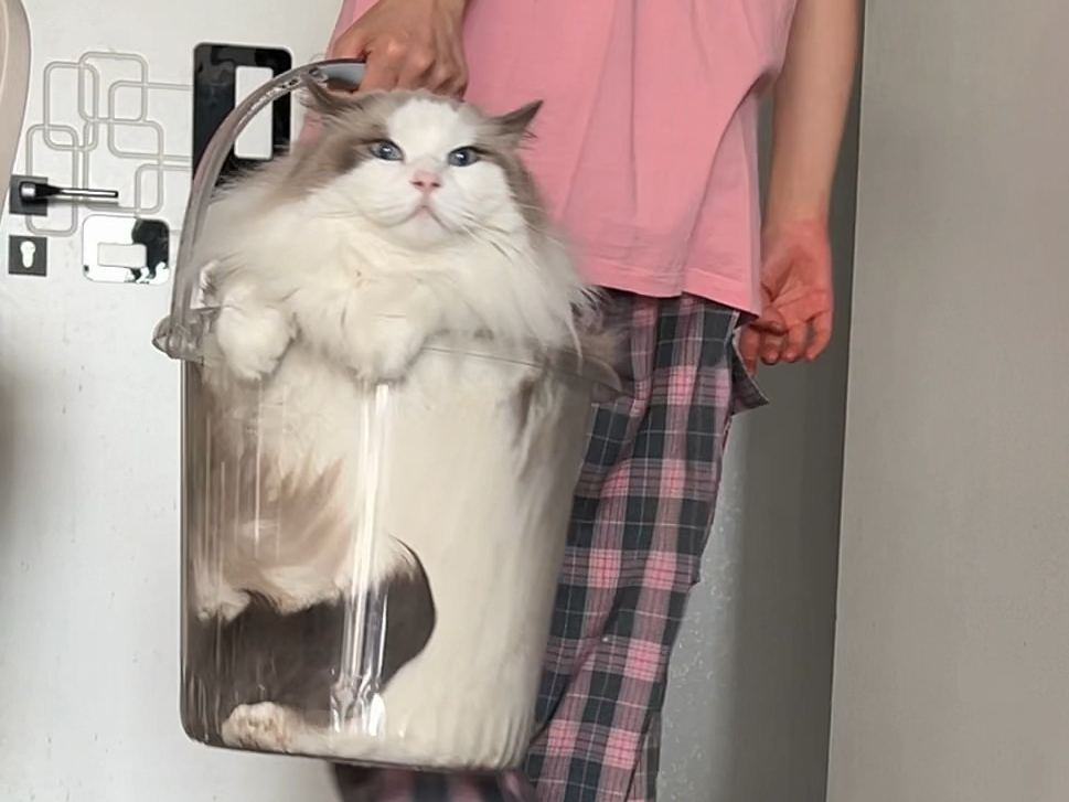 Mèo con nặng 20 pound đi tắm và biến từ xô mèo thành chậu mèo