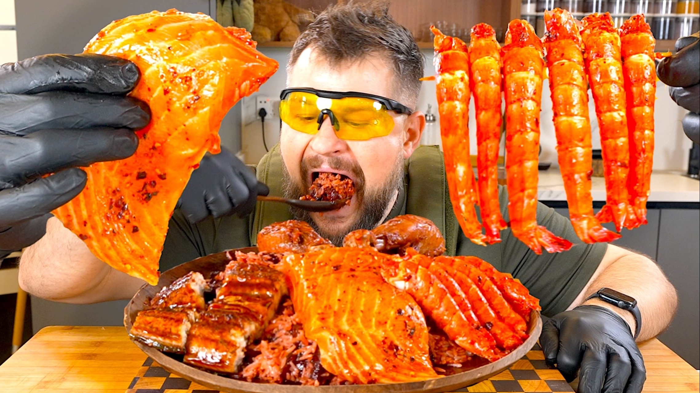 [Mukbang] Kimbab 7 màu và đùi gà rán siêu to khổng lồ