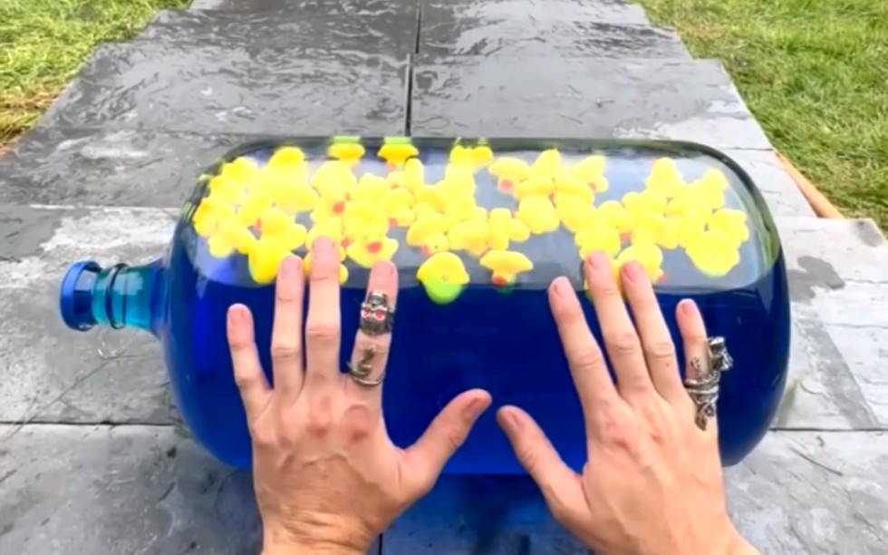 Khoảnh khắc giải tỏa áp lực bằng cách lăn chai xuống cầu thang