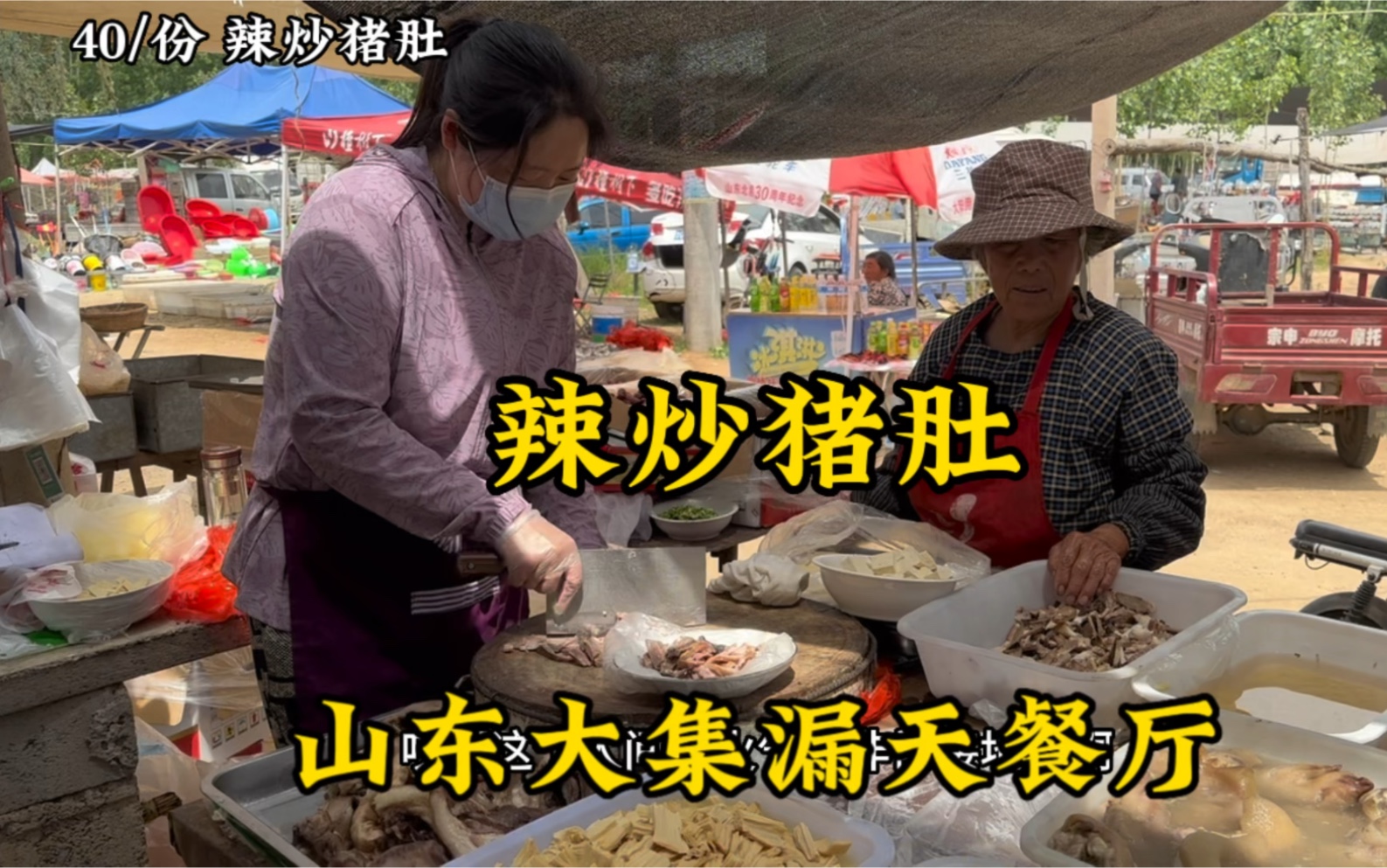 Chợ phiên lớn ở Sơn Đông "quán rượu sớm", chị bán súp dê làm món mặt dê trộn nóng, giá 40 mỗi phần,