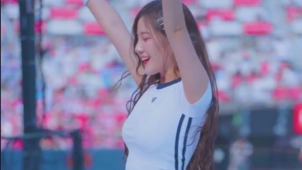 Cô cổ động viên Lee DaHye nhảy xung quanh và trông khá mệt mỏi
