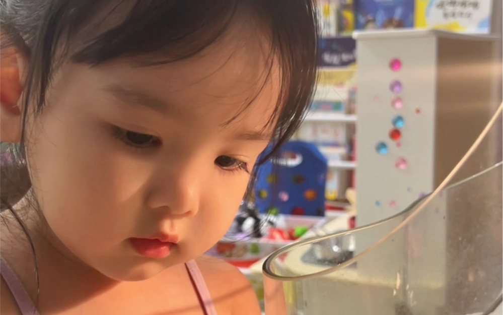 Vì khuôn mặt dễ thương nên cô bé được cô chủ cửa hàng cho ăn đồ ăn ngon~
