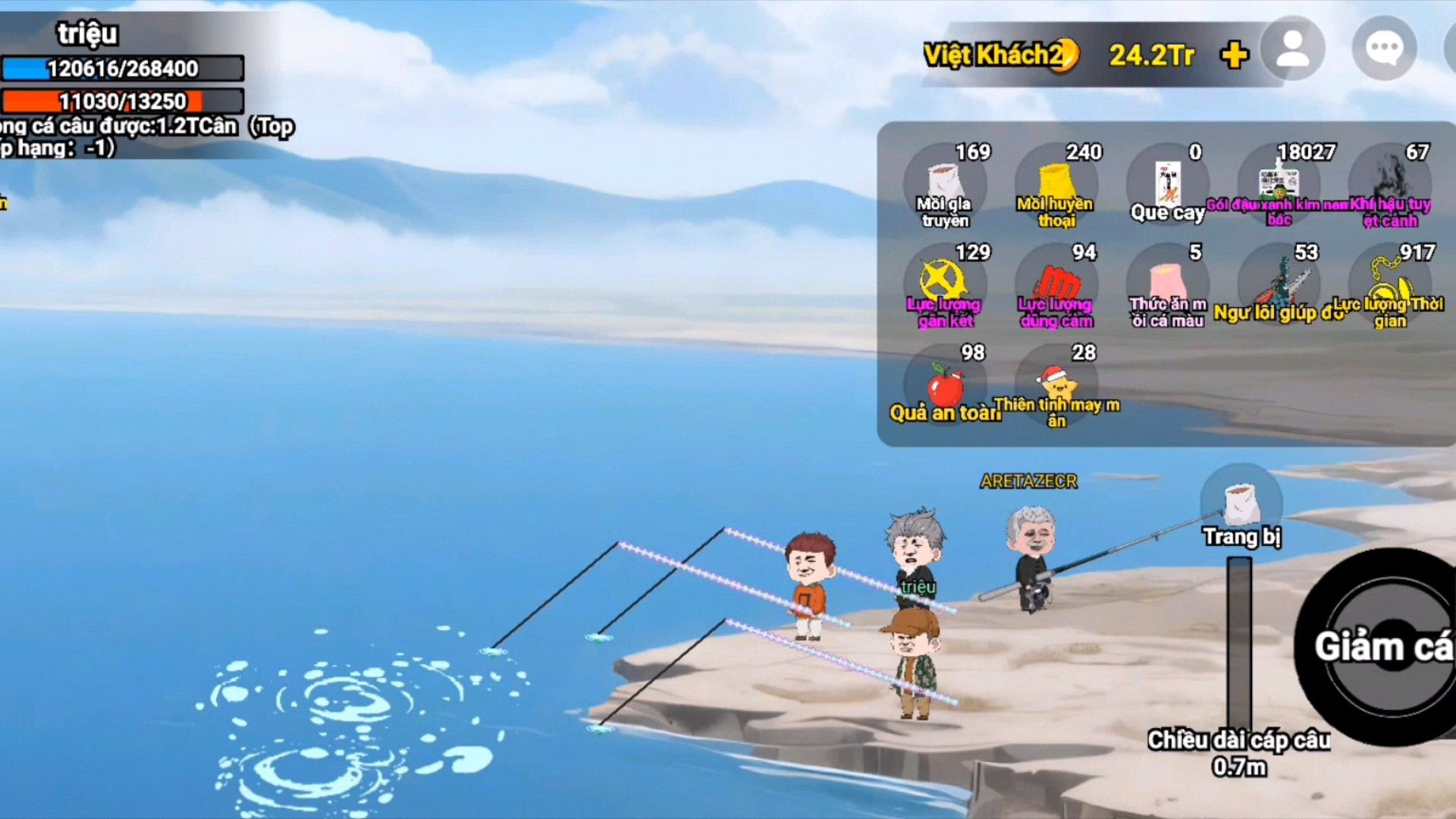 câu cá và chỉ lấy vật phẩm