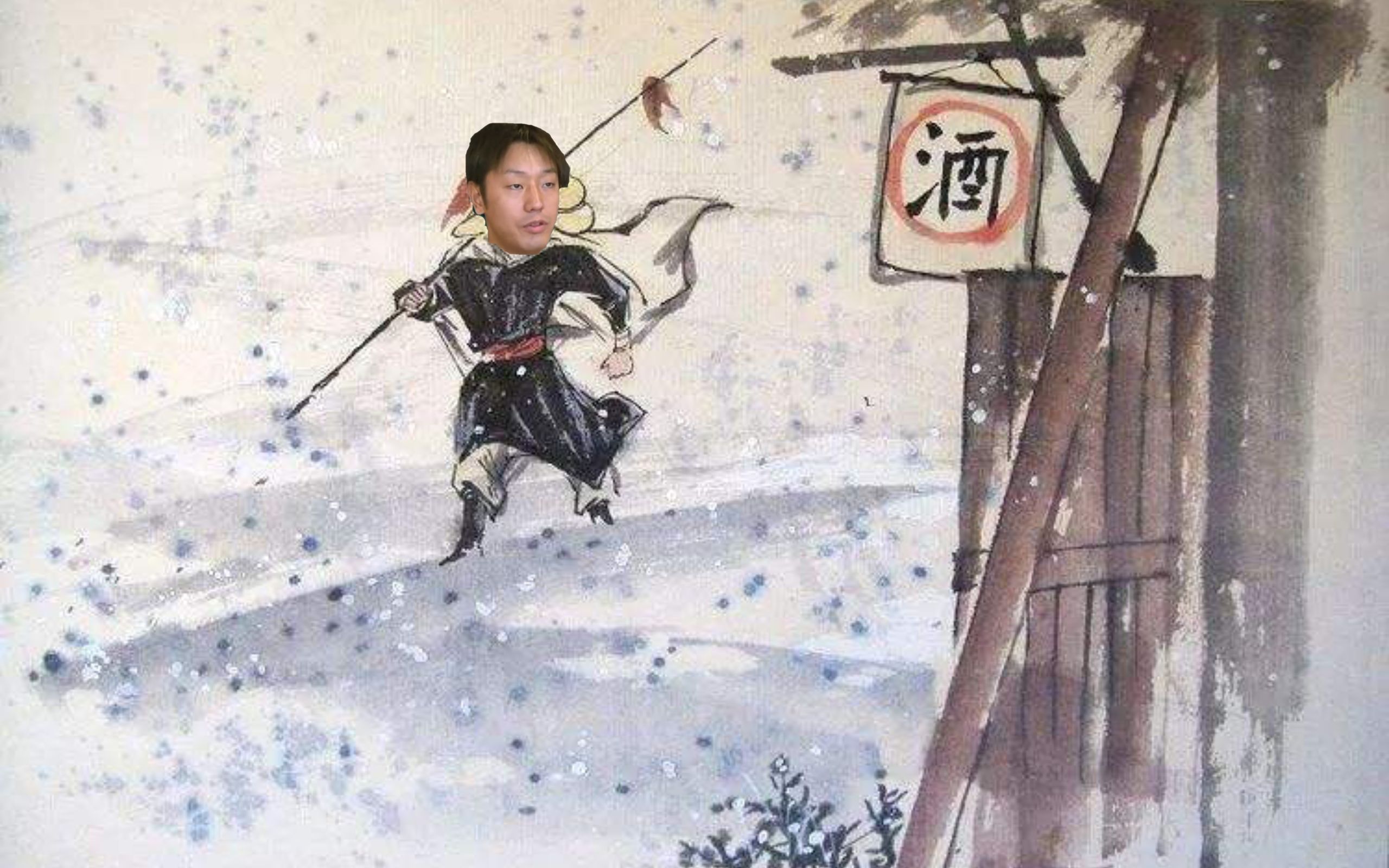 Hai người cùng nhau uống rượu trong tuyết