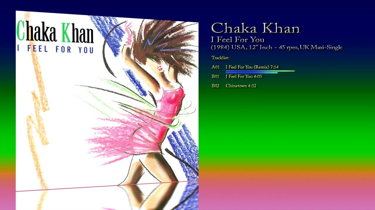 Chaka Khan - I Feel For You Release: 1984 USA Label: Warner Bros. Records Format: Vinyle, 12" Inch 45 RPM, Maxi-Single, UK Release Genre: Electro, Funk / Soul A01 I Feel For You (Remix) 7:14 B01 I Feel For You 4:03 B02 Chinatown 4:32 Enjoy Your Listening ;) ╔═╦╗╔╦╗╔═╦═╦╦╦╦╗╔═╗ ║╚╣║║║╚╣╚╣╔╣╔╣║╚╣═╣ ╠╗║╚╝║║╠╗║╚╣║║║║║═╣ ╚═╩══╩═╩═╩═╩╝╚╩═╩═╝ Follow MaJeSTiK MaGiC Universe: Time Machine MaGiC RKO: ▶ https://www.youtube.com/channel/UCHp2dcZh4duXHUcbMtZP_wA/?sub_confirmation=1 MaJeSTiK MaGiC'S PARADISIO (FRENCH CHANNEL): ▶ https://www.youtube.com/channel/UCZtZkGDTumzmB-28T_2wNmg/?sub_confirmation=1 Other Link MaGiC RKO ▶ BiliBili: https://www.bilibili.tv/en/space/1249685368 ▶ Mixcloud: https://www.mixcloud.com/majestik-majic/ ▶ Facebook: https://www.facebook.com/groups/633886910873213