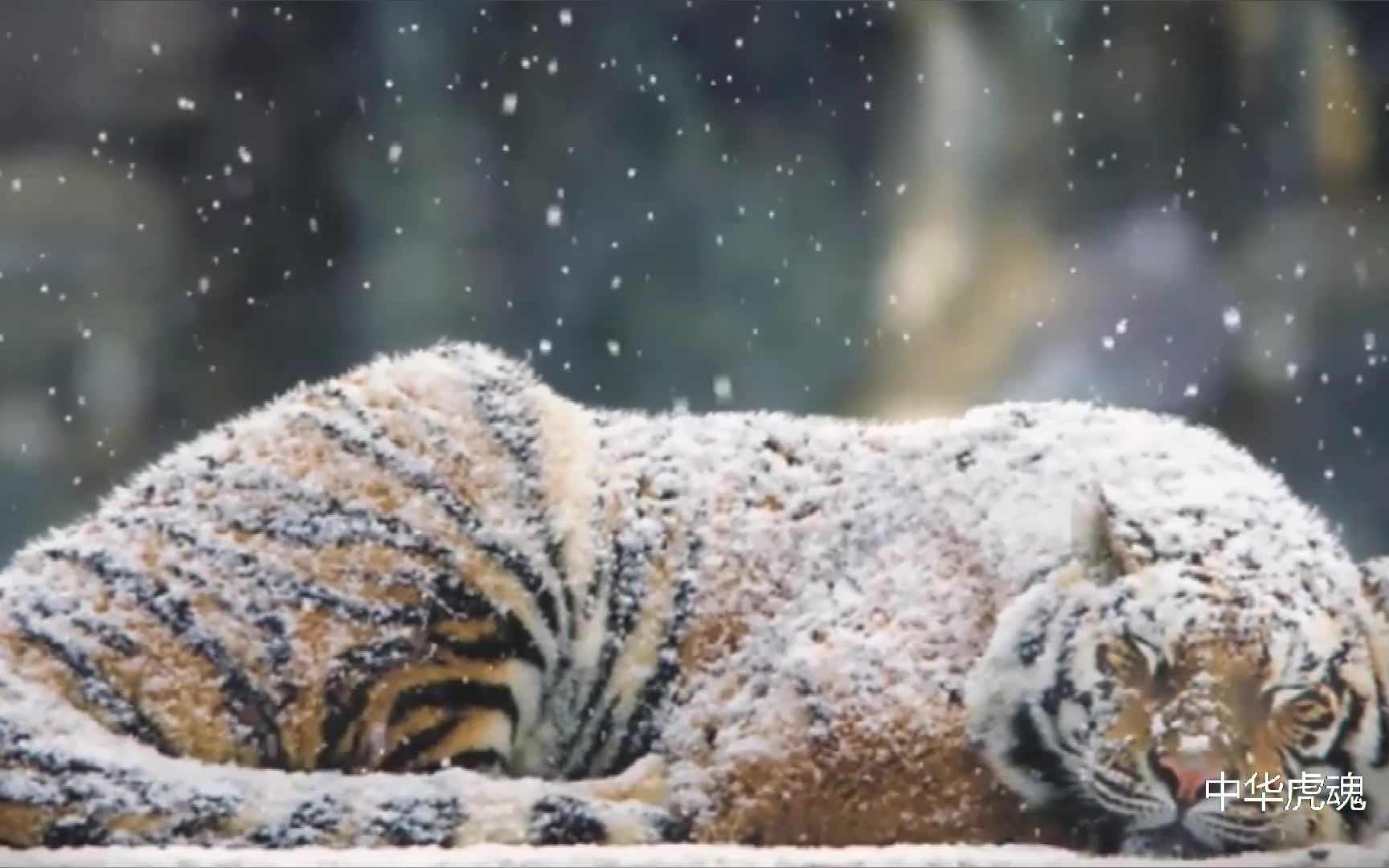Chống đóng băng thực thụ! Con hổ đang nằm mơ trên tuyết lạnh giá
