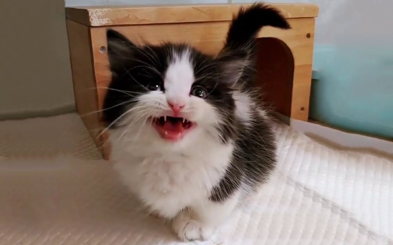 Bố mèo lần đầu tiên nhìn thấy con mèo sữa nhỏ ~