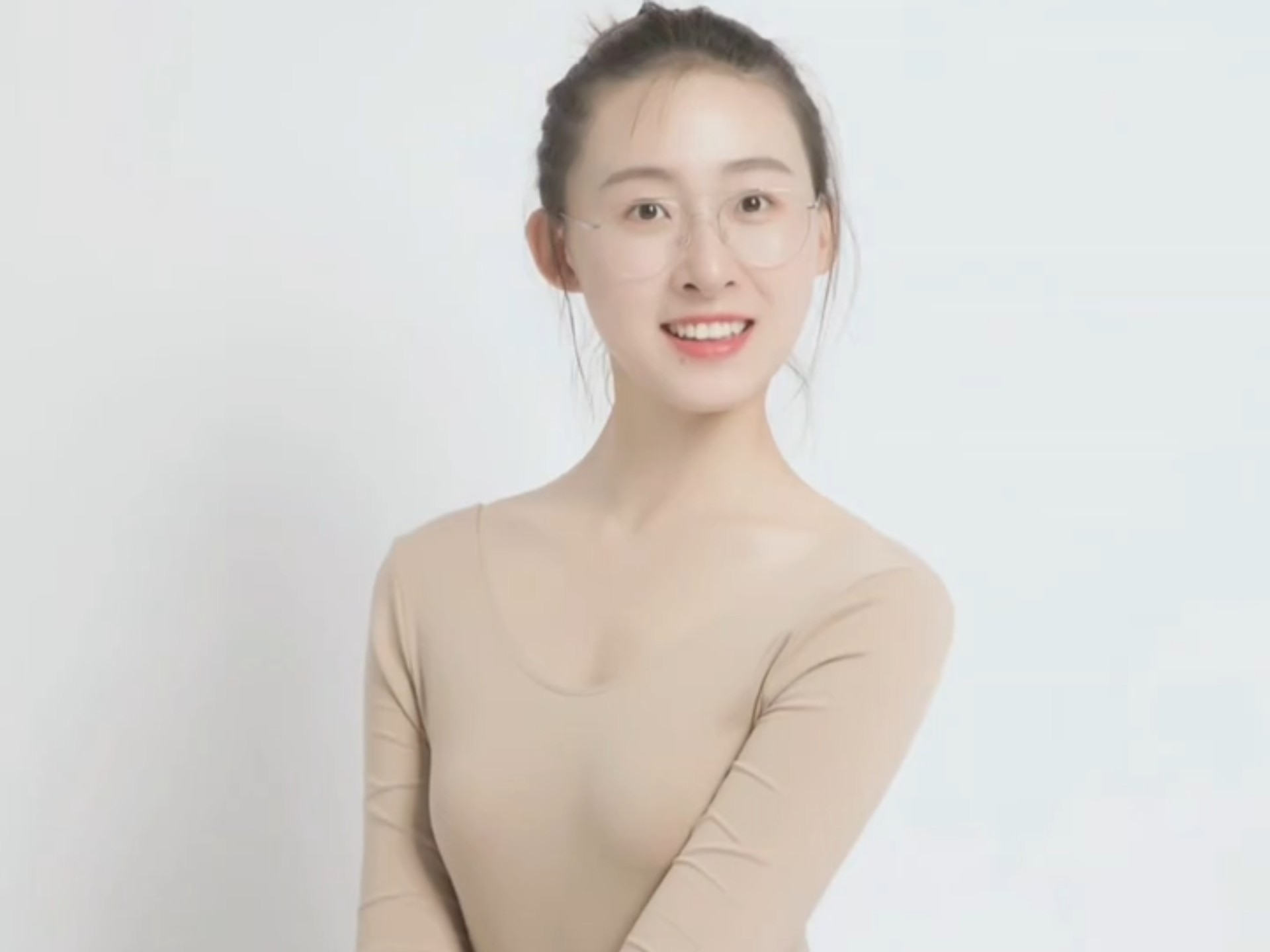 Em gái vũ công mặc đồ thể dục màu hồng chụp ảnh