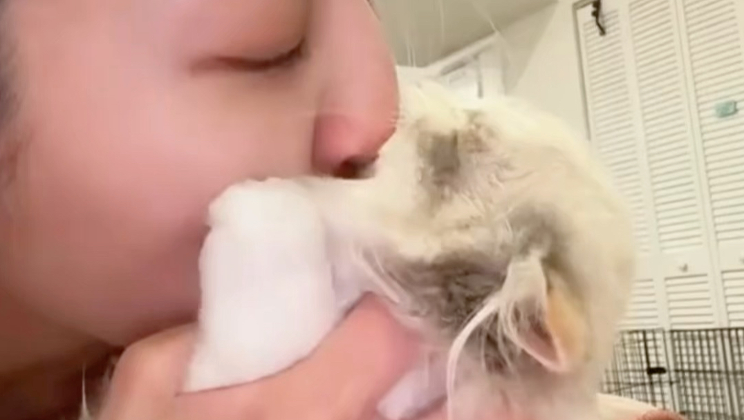 Hăng say vuốt ve bụng mèo con nhỏ | Lật ngửa chú mèo con đang ngủ | Cuộc sống thường ngày của mèo co