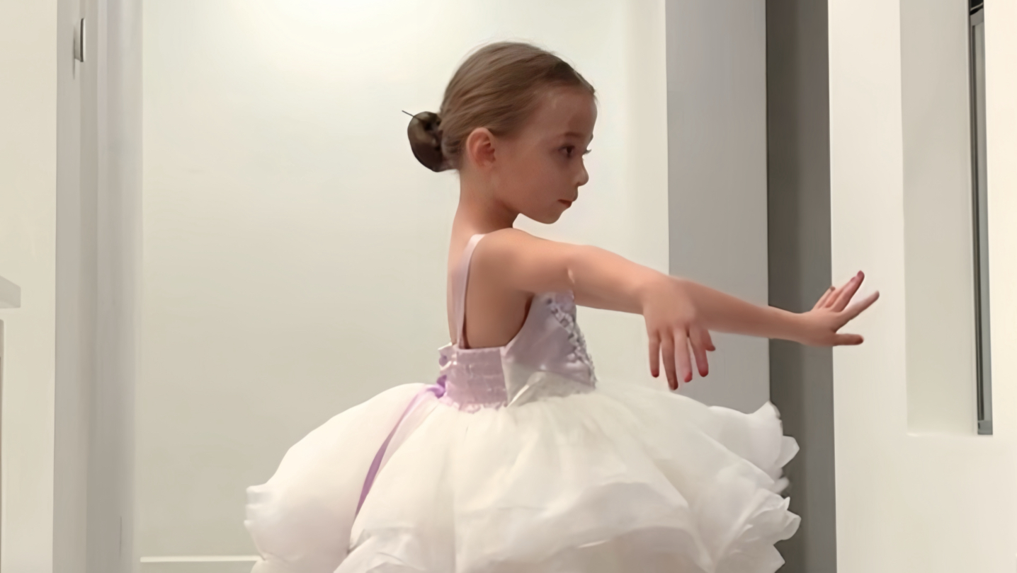 Cô bé lai 3 tuổi vô cùng đáng yêu khi chăm chỉ học nhảy trong buổi học đầu tiên