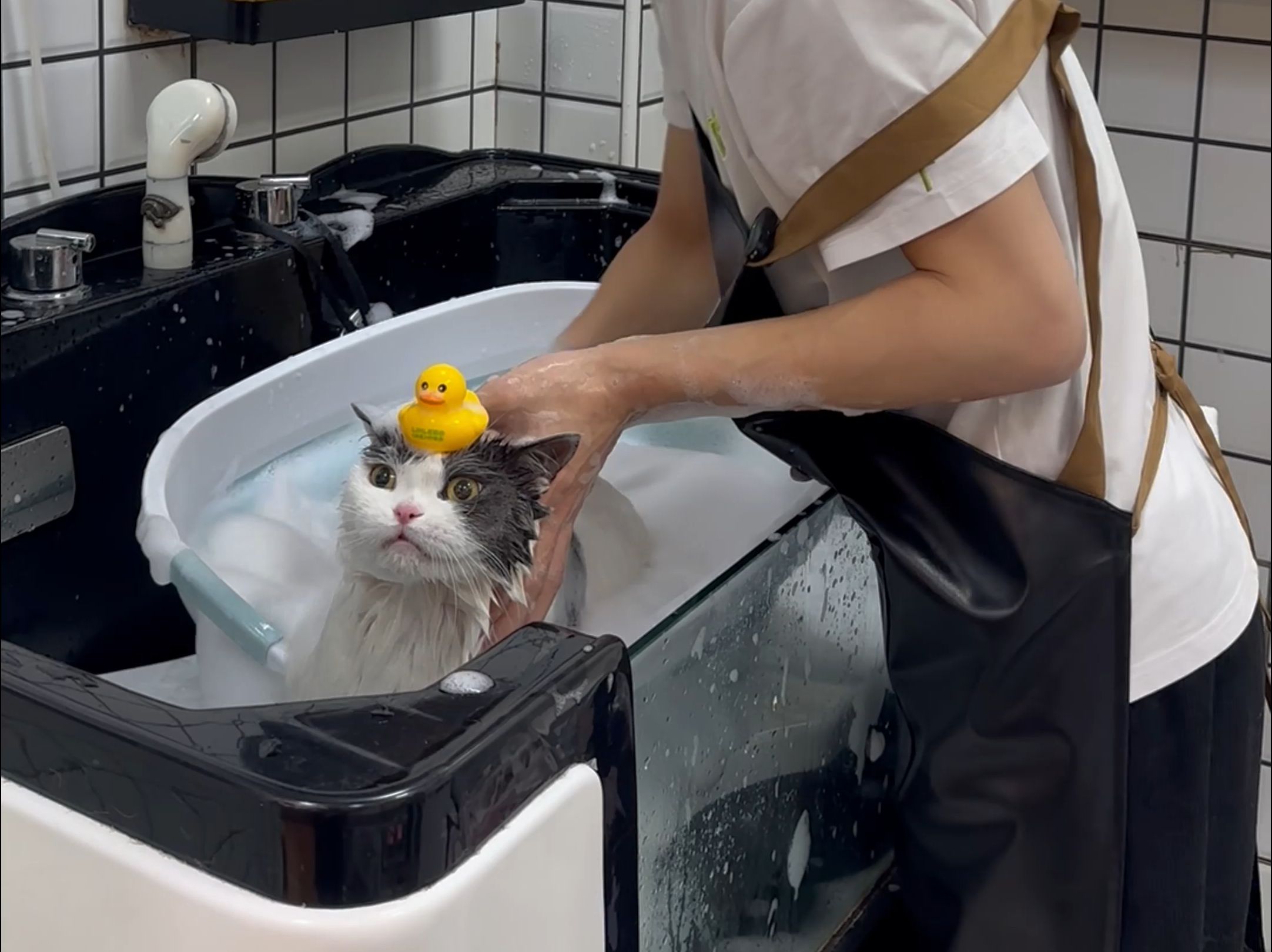Mèo con nặng 20 pound đi tắm và biến từ xô mèo thành chậu mèo