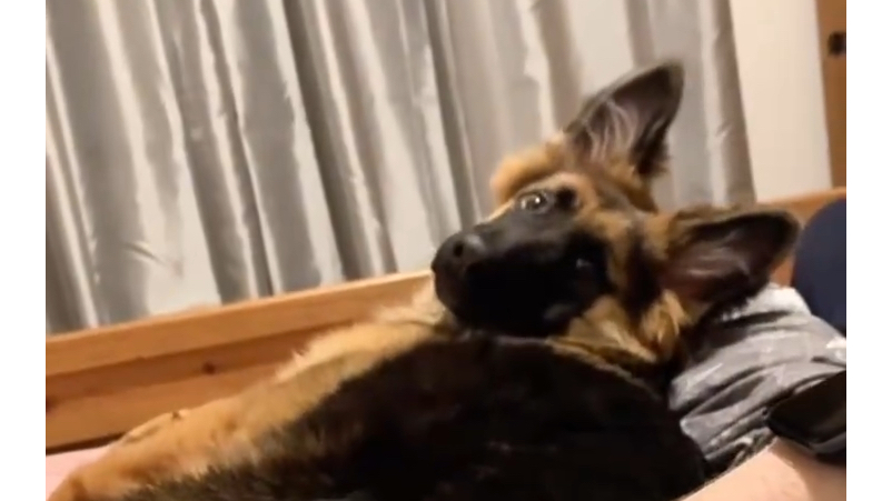 Khi chủ nhân đang vuốt ve chú chó thì đột nhiên dừng lại…
