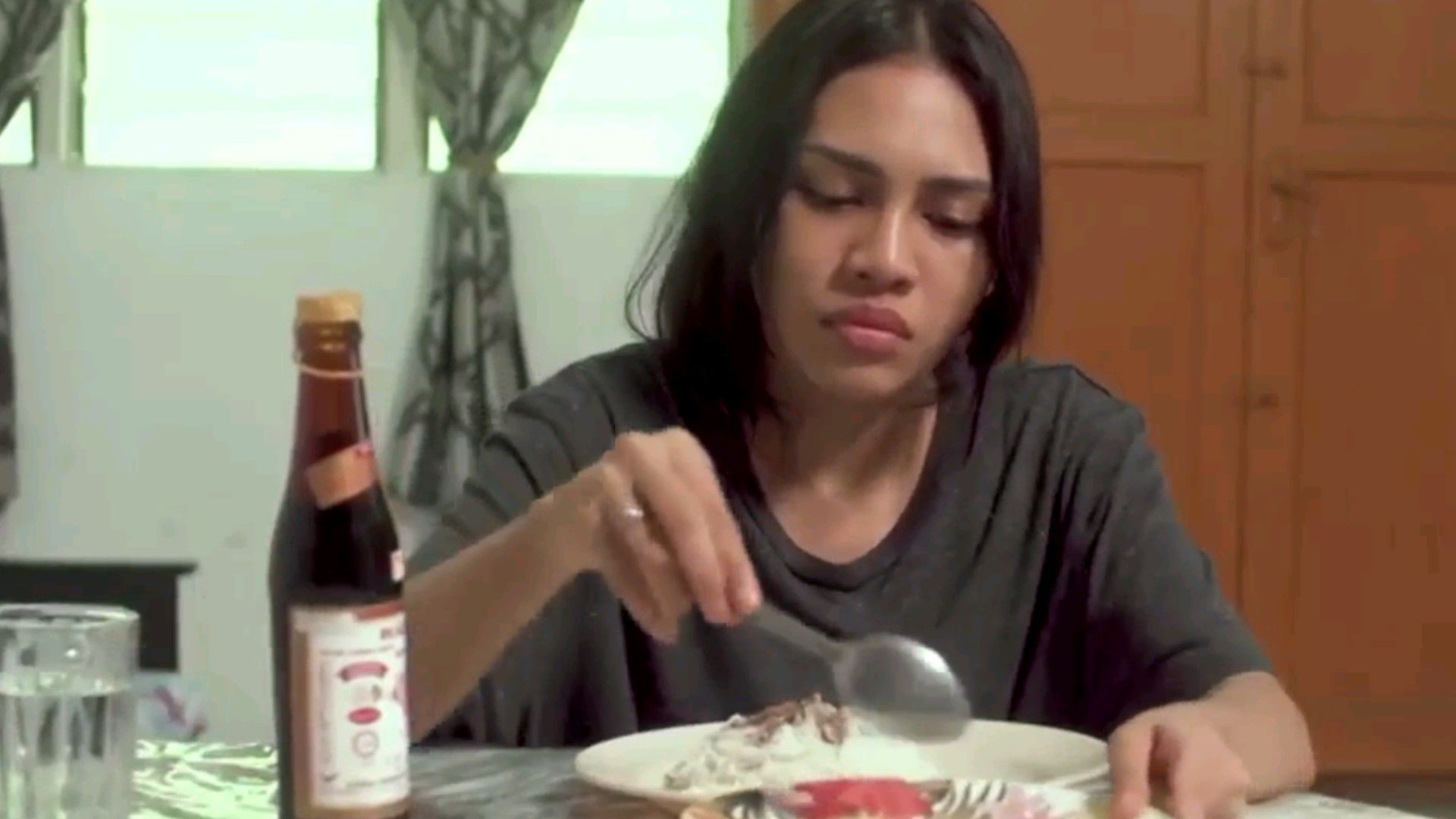 Người phụ nữ đang ăn dưa chuột trong siêu thị thì xuyên không.