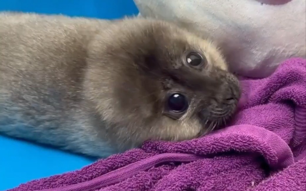 Hải cẩu con 21 ngày tuổi lần đầu bị sặc nước