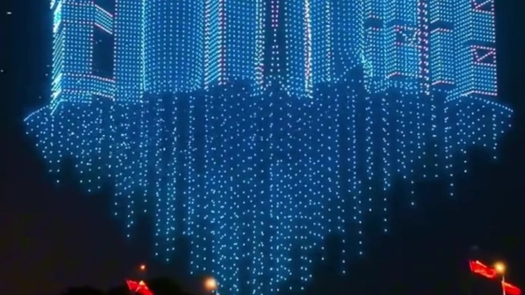 Chào mừng kỷ niệm 75 năm thành lập nước Trung Hoa, màn trình diễn của 3000 máy bay không người lái t