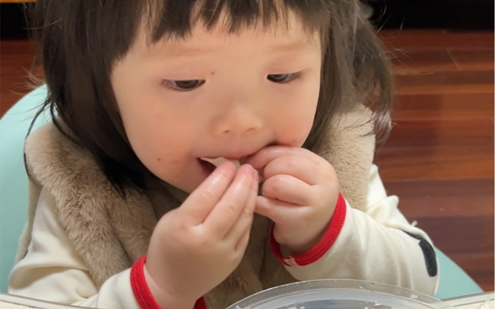 Em bé háu ăn dễ thương đã cắn một miếng rất lớn!