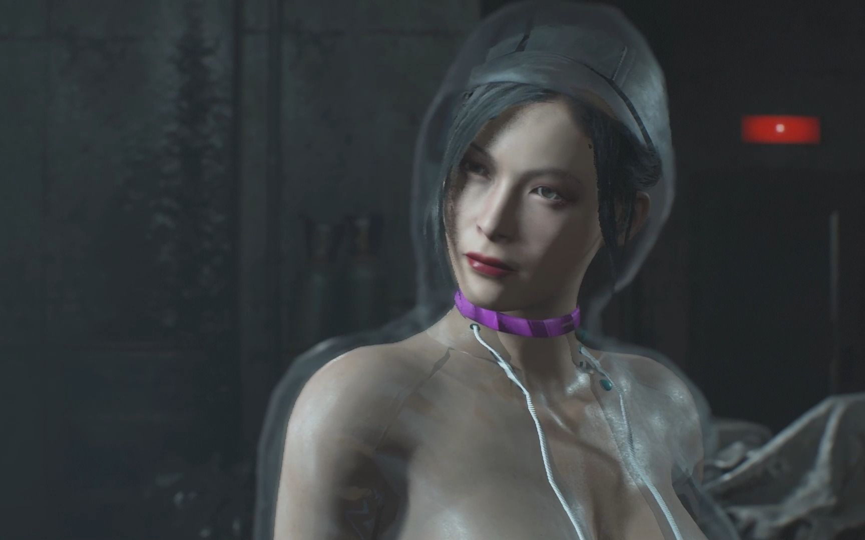 Resident Evil 2: Ada mặc một bộ đồ ngủ màu tím gợi cảm và quyến rũ, không phù hợp với thây ma