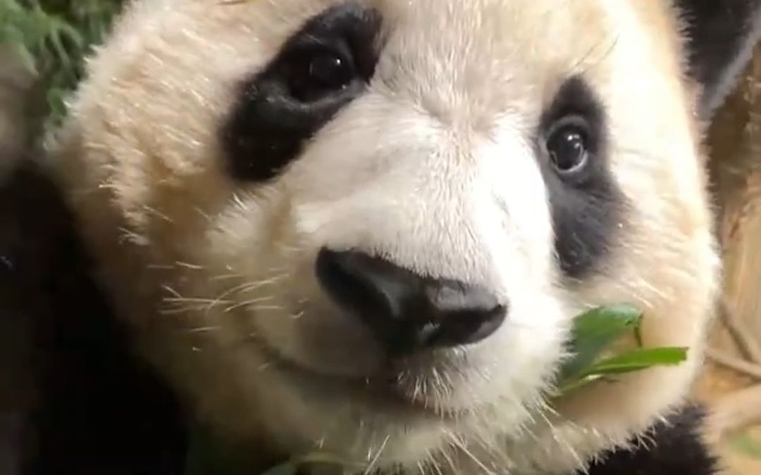 [Động vật]Gấu trúc Huahua đang tránh mưa bóng mây dưới tán cây