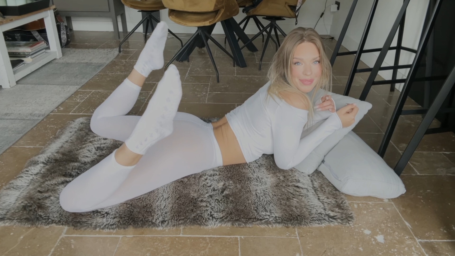 Yoga với váy siêu ngắn ren trắng | Tất ren trắng bị rách rồi~